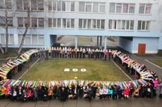 Учні Черкаської гімназії № 9 влаштували на подвір`ї флешмоб, присвячений 200-річчю від дня народження Т.Г.Шевченка. Понад 1200 стрічок вплели у вінок Кобзареві і одночасно підняли їх вгору.