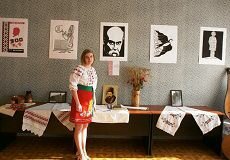 Окрасою цього дня стала персональна виставка юної талановитої художниці, учениці 9-А класу Анастасії Шаповал, яка представила роботи, виконані унікальною технікою малюнка кольоровим піском. Всі роботи присвячені творам Т.Г.Шевченка.